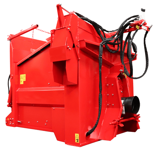 Elle est équipée d'une turbine mixte avec ou sans démêleur, d'une goulotte hydraulique équipée d'une casquette mécanique (orientable en option) ainsi que d'une porte arrière de chargement 2,70 m.