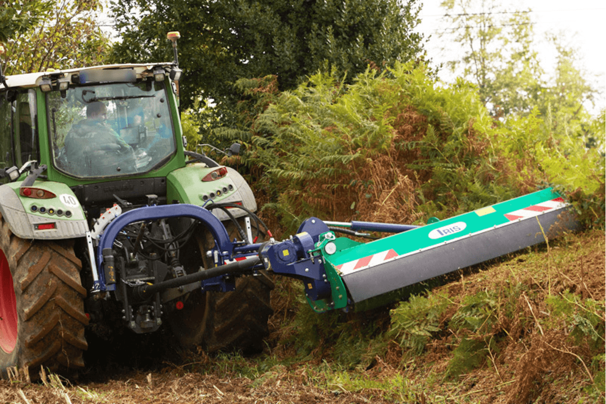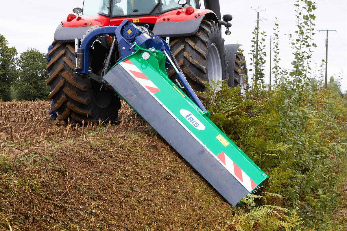 Les broyeurs d’accotement IRIS permettent un déport latéral plus important pour l’entretien des vergers, des broussailles et des bords de routes et sont adaptés pour des tracteurs de puissance moyenne et les tracteurs de grands gabarits. Boîtier extérieur avec roue libre, entraînement 4 courroies, rotor Ø168mm équipé de marteaux B2. Attelage en chapes - Flottant et déportable par parallélogramme. Antiprojection palettes zinguées avant et patins semelle anti-usure boulonnés en HARDOX®