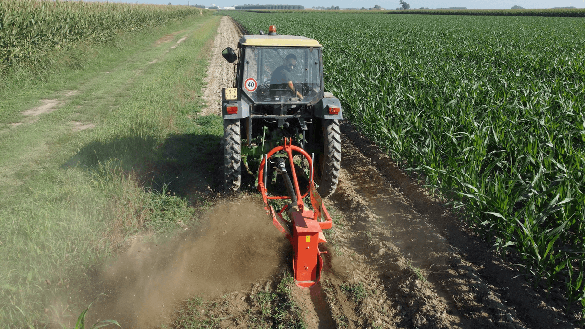 Cureuse de fossé axiale (MP60) ou déportable (MP 61). Diamètre du rotor de 30 à 55 cm. Cardan boulon ou à friction.