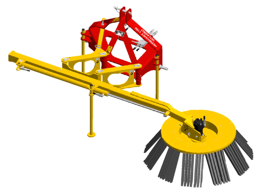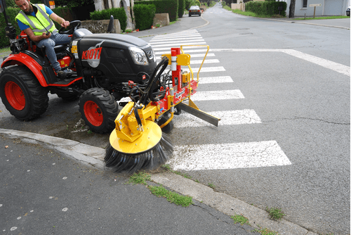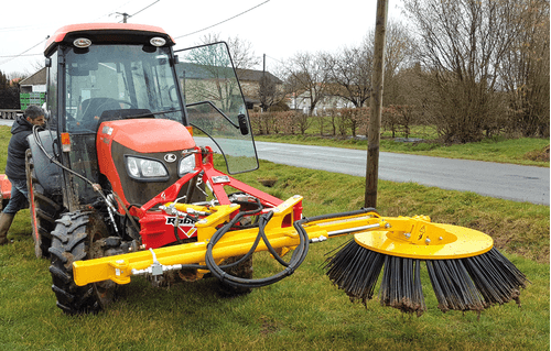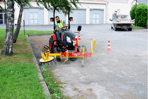 Sur tracteur : HERBIONET -T s'adapte sur le 3 points à l'avant ou à l'arrière, catégories 0, 1 et 2. Spécialement conçu pour le désherbage dans les communes. 4 modèles de brosses en acier méplat ou toron. Déport hydraulique de 0.90 m, inclinaison mécanique gauche-droite ou hydraulique en option.