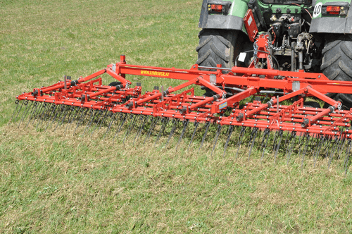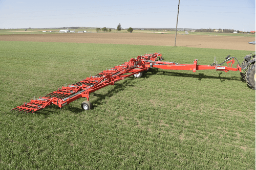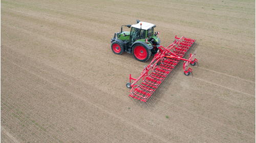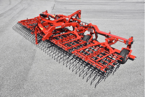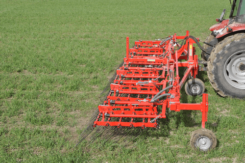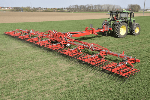Dents individuelles de 7 mm, jusqu’à 530 mm de passage (pour culture haute et buttes), réglage hydraulique de l’agressivité (jusqu’à 6 kg de pression par dent), châssis fermé qui s’adapte parfaitement au sol, repliage facile, silencieux même à vitesse élevée. Largeurs de travail de 2 m à 15 m. Choix d’équipements en option.