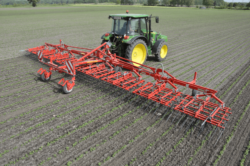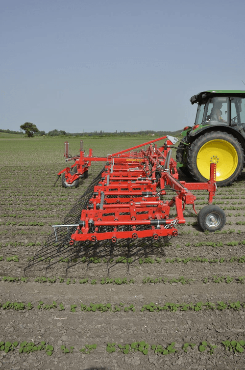 Cette gamme de herse premium AEROSTAR-FUSION sont des herses étrille qui permettent d’étriller efficacement les cultures arables comme le maïs, le soja, le tournesol, les céréales, la féverole, la betterave sucrière, etc., également les cultures en planches ou les cultures sur ados (de pomme de terre …) et les cultures spéciales (comme les légumes, les herbes, etc.).