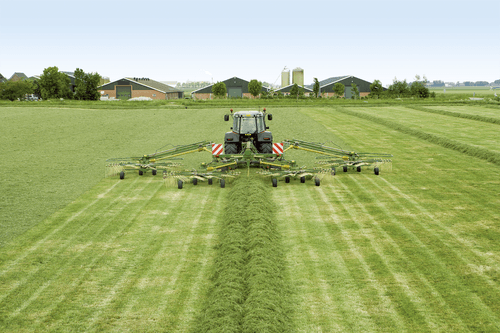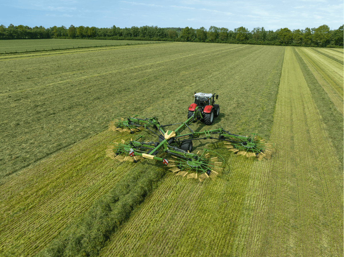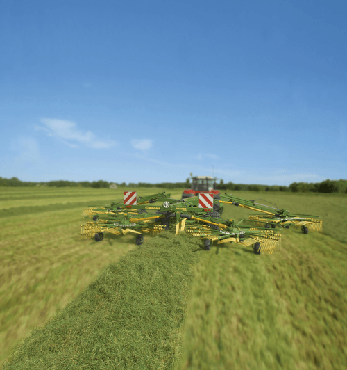 Bras repliables : une exclusivité Krone, fini les bras à démonter et à porter à chaque changement de parcelle. Came duramax sans entretien, ni vidange, garantie 3 ans. Grâce à son faible diamètre, les dents s’effacent vite et créent un andain très régulier.