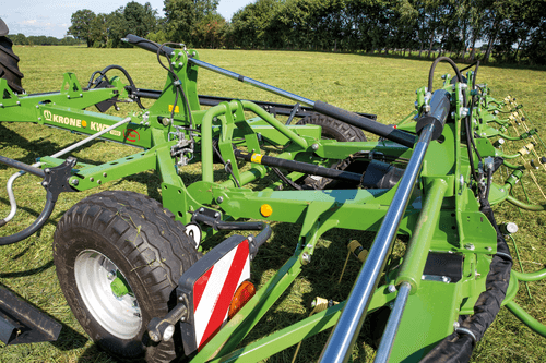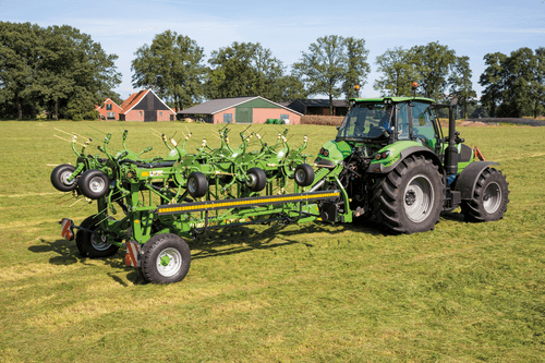 Les faneuses KWT grandes largeurs travaillent de 13,10 m à 19,60 m avec de 12 à 18 toupies.
