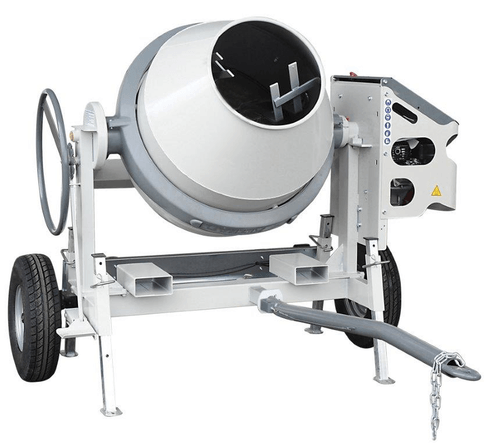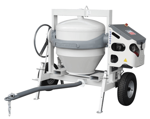 Capacité 340 L, capacité de malaxage 280 L, soit 2 sacs de 35 kg de ciment, timon Top, sécurité avec système breveté, moteur thermique Robin SP170, poids 305 kg.