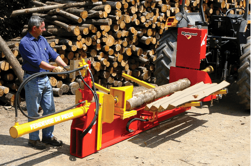 La puissance de fendage de ces 2 modèles est de 15 tonnes avec pompe tracteur 2 coupleurs (18 t en option, entrainement PDF 540 tr/min).