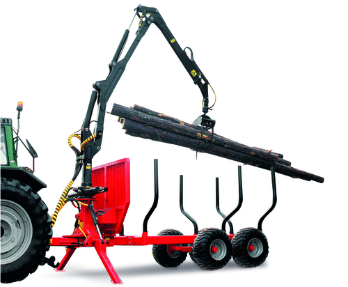 Une gamme de remorques forestières avec homologation routière composée de 2 modèles, 8,5 tonnes et 10,6 tonnes avec une garde au sol importante.
