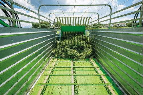 Plusieurs types de déchargement : porte, tapis latéral, démêleurs et tapis d’une largeur allant jusqu’à 1m40 rétractable hydrauliquement.