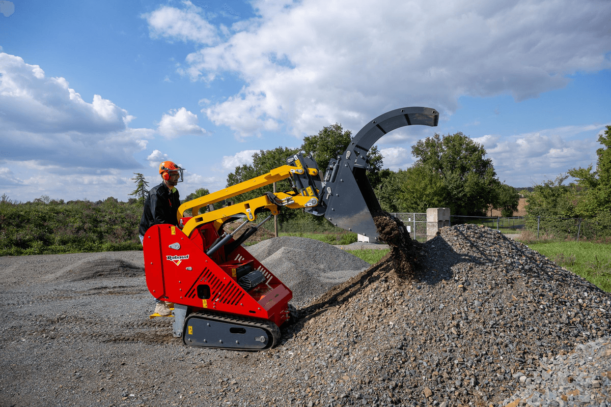 Porte outils ultra compact sur chenilles pour tous types de terrains qui assemble puissance, maniabilité et polyvalence. Pour les besoins des espaces verts, BTP etc… Bras hydraulique multifonction avec levage jusqu’à 2,10 m et capacité de 890 kg avec un vérin de cavage sur l’attache pour plus de précision et de polyvalence et qui peut recevoir une large gamme d’accessoires pareils qu’un lamier pour la taille, un godet, un enfonce pieux, une fourche à palette, une balayeuse, broyeur etc…