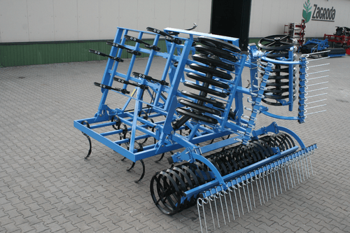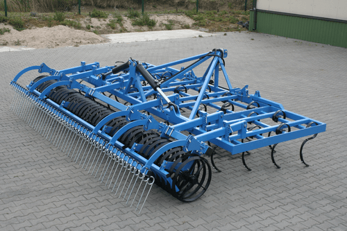 Attelage 3 points cat. II avec barre d'attelage pour largeur 3 m et 4 m et cat. III avec barre d'attelage pour largeur 5 m et 6 m.