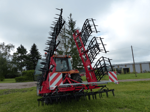 * Cinq modèles de herses HVSL, largeur de travail de 5 m à 9,40 m, de 84 à 162 dents, poids de 1 660 à 2 750 kg.