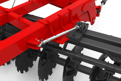 Le réglage de la profondeur de travail peut se faire par l'angle des trains de disques. Pour doser l'agressivité de vos disques il faut ajuster le terrage grâce à la butée sur le vérin réglable de l'essieu.