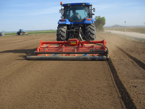Fraise rotative avec rotor à lames équerres et prise de force à 540 tr/min ou 1000 tr/min.