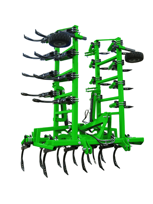 Conçu avec un châssis en tube structurel 100 x 100 x 8 mm et des dents de 40 x 40 mm, sa profondeur de travail peut atteindre jusqu'à 35 cm avec un dégagement vertical sous châssis de 75 cm et un dégagement entre rangées de 80 cm ou 75 cm selon que vous choisissez un cultichisel à 2 ou 3 rangées.