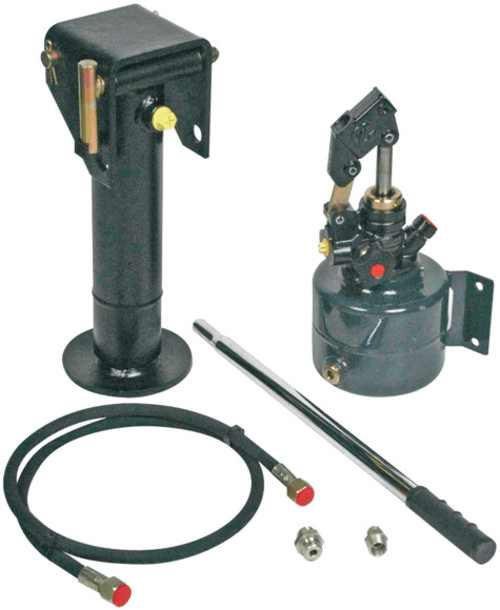 10 T. Ø 91 mm. Kit comprenant : une béquille avec chape et axe, une pompe manuelle avec levier et un flexible de 1,5 m avec raccord.