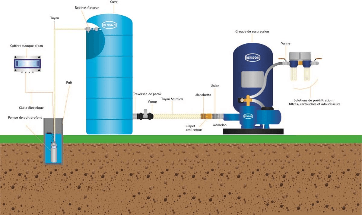 Equipé d'un flotteur, d'un condensateur interne, de 15 m de câble électrique avec prise.