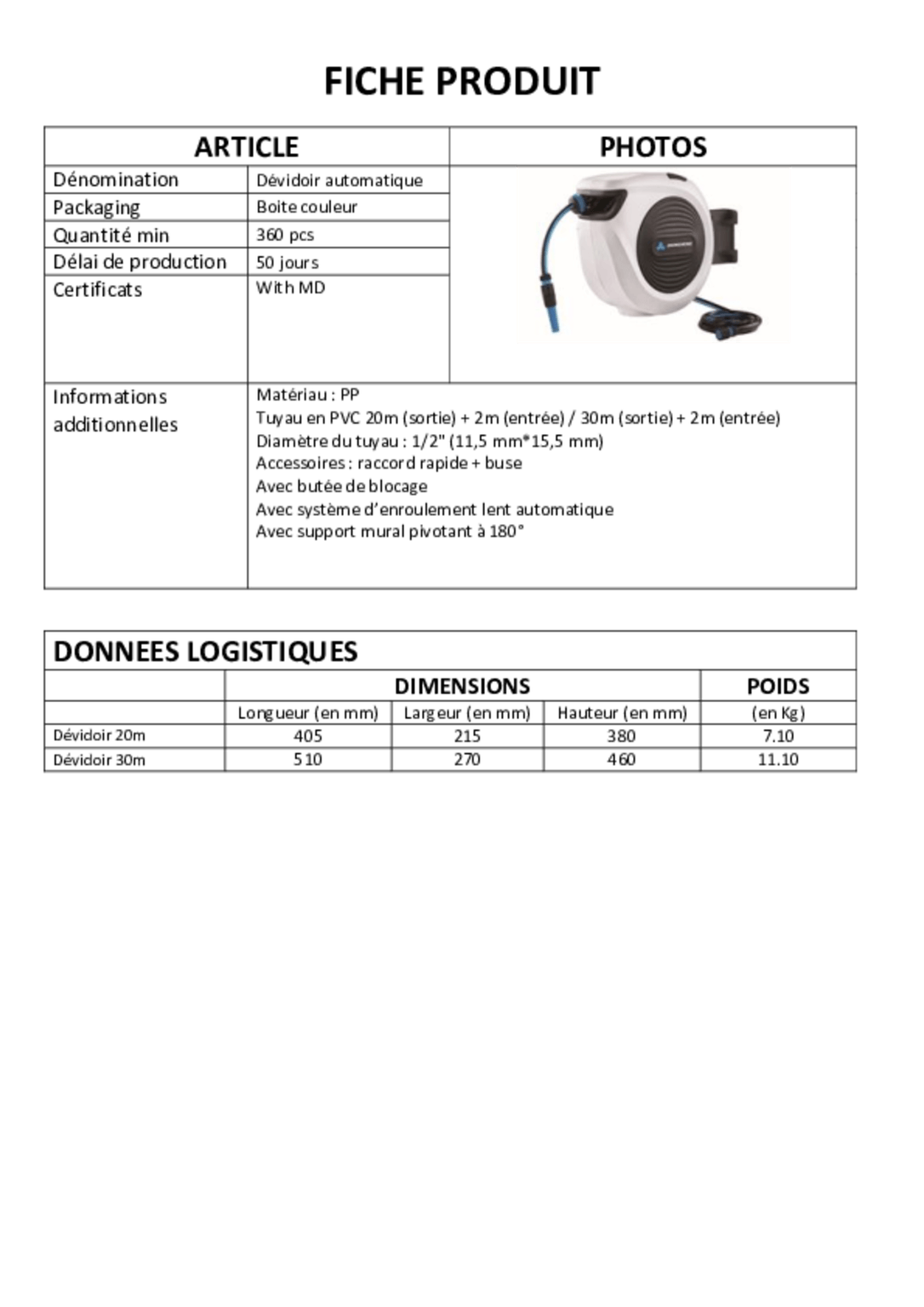 Guide-tuyau rétractable automatique.