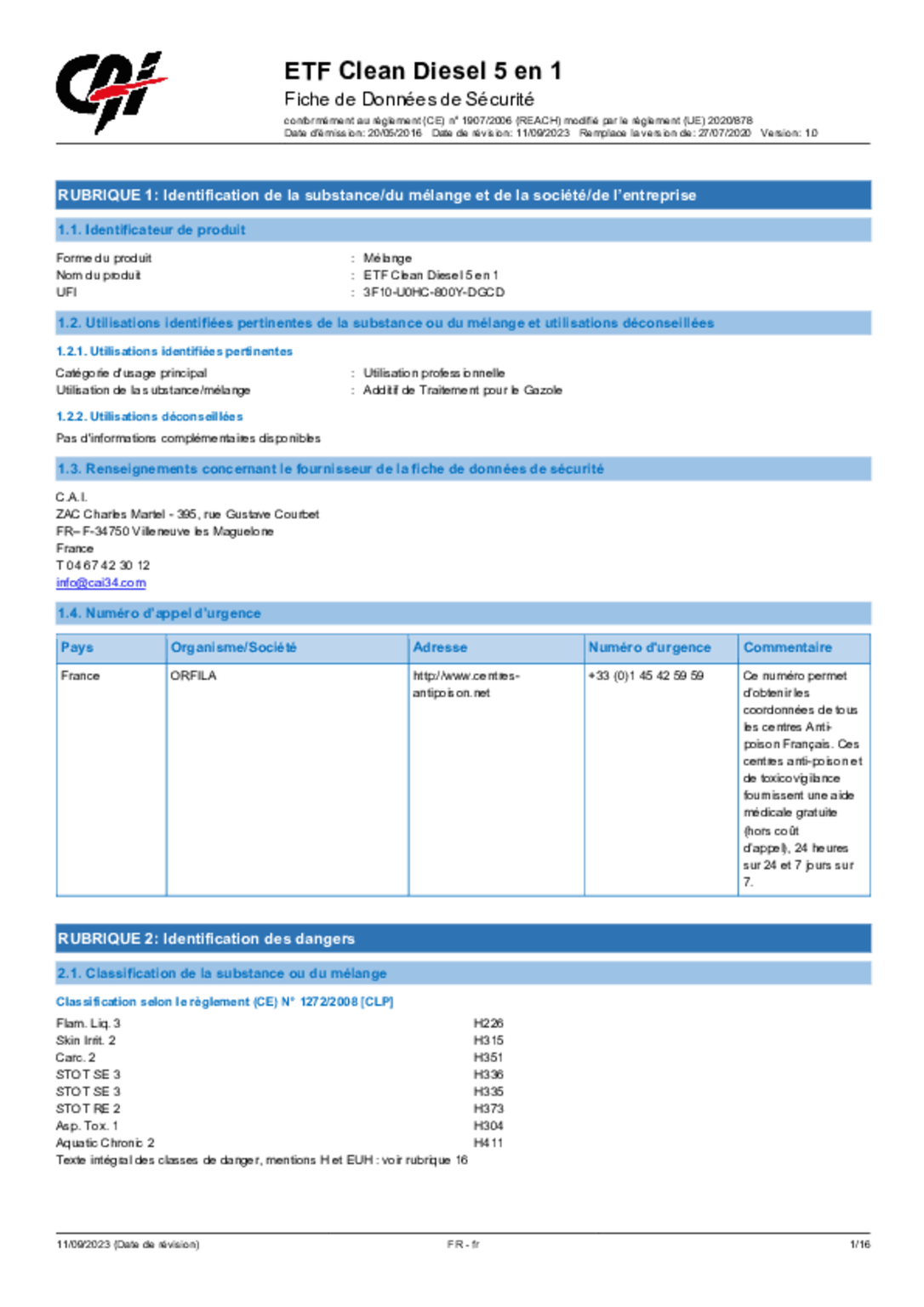 Compatible avec l'utilisation des systèmes de traitement post-combustion : FAP, SCR, catalyseurs.
