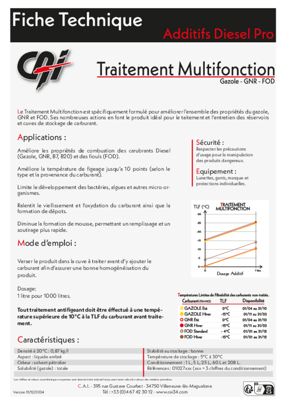 Traitement multifonction. Pour tous les véhicules à moteur Diesel non routier (tracteurs, pelles mécaniques, bateaux...). Nettoie, décontamine et détruit tous les dépôts et bactéries accumulés dans les cuves. Conserve les réservoirs et stockages propres. Stabilise le GNR durant l'inter-saison et conserve le GNR. Améliore la protection au froid. Protège les injecteurs. Le traitement GNR doit être utilisé avant chaque remplissage de cuve. Bidon 1 L.