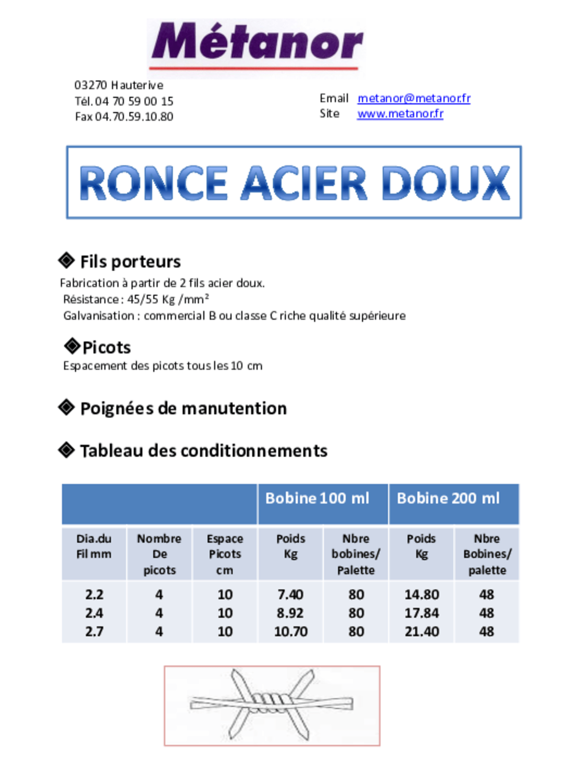 Diamètre du fil : 2,7 mm.