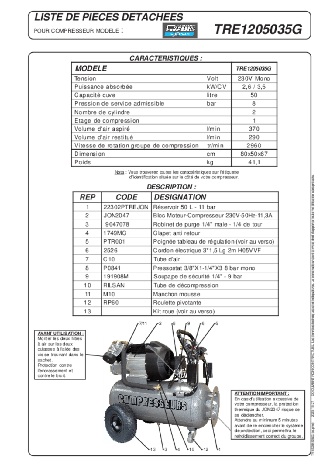 - Compresseurs, outils pneumatiques