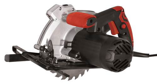 Carter de protection de lame, escamotable lors de la coupe, avec ressort de rappel.