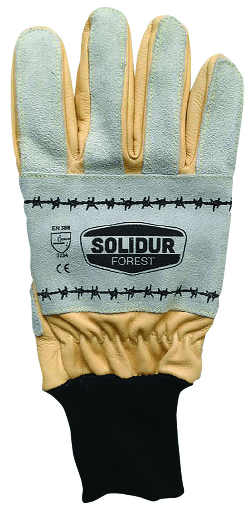 Gants de débardage. Cuir de fleur de bovin doublé cuir croûte. Usages : arbustes à piquants, débardage, câblage, barbelés. Renforts de : paume, métacarpe, doigts. Poignet bord-côte. Protège artère cuir. Cousu fil Aramide. Très bonne résistance à l'abrasion. Grande souplesse et flexibilité. Conformes aux normes EN420 et EN388 4144X. Sur cavalier.