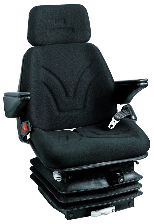 Suspension pneumatique 12 V basse fréquence. Revêtement tissu. Largeur coussin assise 530 mm. Avec accoudoirs.