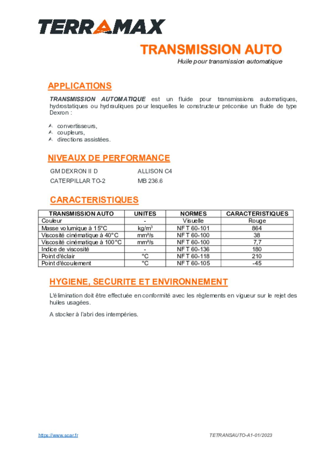 Pour transmissions automatiques, hydrostatiques ou hydrauliques.
