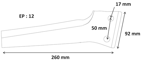 Longueur : 260 mm. Largeur : 92 mm. Epaisseur : 12 mm. Entre-axe : 50 mm. Diamètre trou : 17 mm. Pour Mekfarmer : 80, 100. Droite.