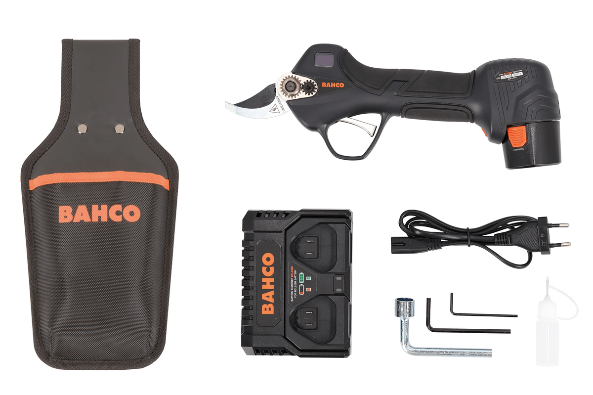 Sécateur à batterie. Moteur brushless. Puissance : 400 W. 2 Batteries lithium 10,8 V- 2,5 Ah. Lame acier...